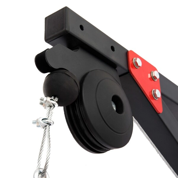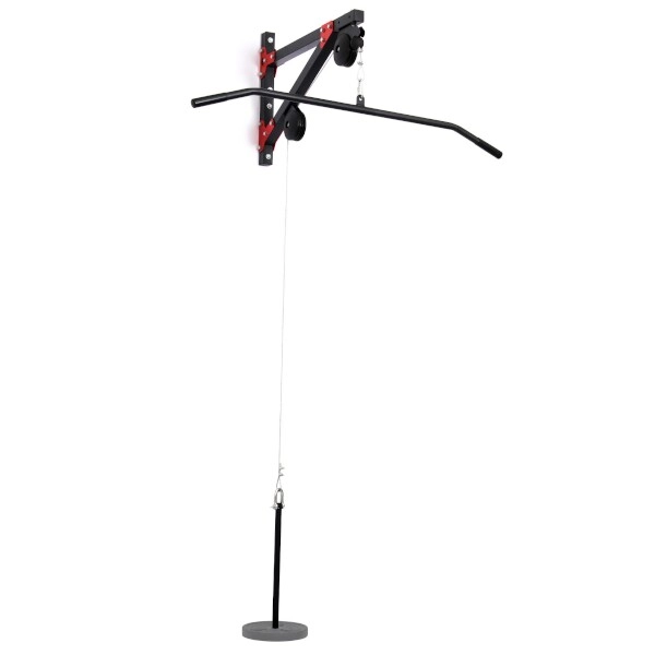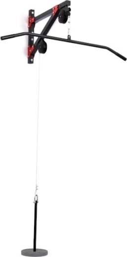 Sættet inkluderer også en bred adapter (MH-C001), stålkabel og to karabiner – det er blot at fastgøre til væggen, så kan du lave lat-pull, nedtræk, triceps pushdowns og andre trækøvelser. Det gummibelagte kabelstop beskytter konstruktionen og remskiverne og absorberer energien ved hurtig frigivelse af adapteren.