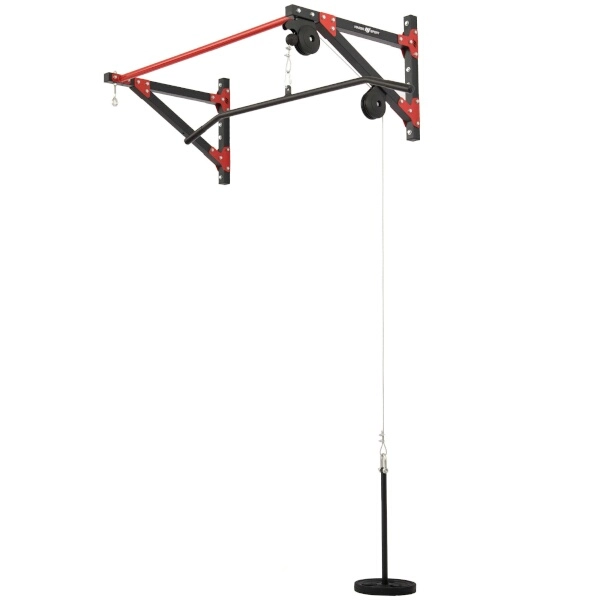 Kabelsystemet er udstyret med stålwire med karabinhager i begge ender. Belastningen påsættes på en stift med en diameter på 22 mm og en længde på 46 cm, hvilket gør det muligt at bruge almindelige vægtskiver. Medfølger gør også et bredt håndtag på 120 cm med komfortable gummigreb til lat-pulldowns og andre trækøvelser. Ophængsøjet til posen er placeret 69 cm fra væggen, og baren er forskudt fra væggen 69 cm for at give god plads under træning.