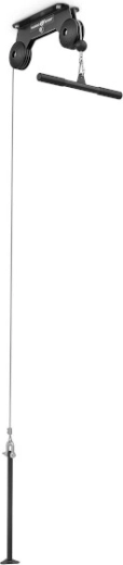 I pakken finder du en tricepsadapter, som udvider træningsmulighederne med tricepsnedtræk, rows og bicepstræk. En gummistop på wireenden beskytter konstruktionen ved pludselig frigivelse. Loftmonteringen sparer plads og muliggør flydende udførelse af øvelser som lat pulldown, tricepsnedtræk eller siddende rows med dit foretrukne greb.