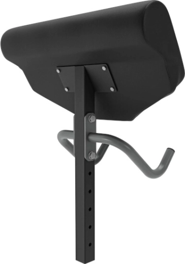 Integrerede kroge til at aflægge stangen gør det muligt først at indtage korrekt position og derefter gribe stangen – uden unødig løftning fra gulvet. Krogene kan desuden nemt afmonteres. Takket være 5 højdepositioner kan du tilpasse puden præcist til din kropsbygning og træningsstil.