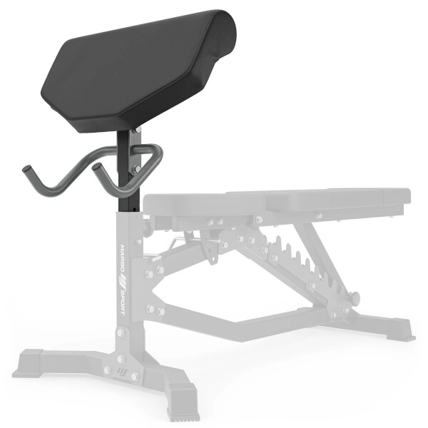 MARBO MS-A101 2.0 udvider din træningsbænk med en prædikantpude til præcise og sikre isolerede øvelser for biceps og triceps. Den robuste konstruktion af stålprofil, kraftig plade og tæt skum med slidstærkt betræk sikrer komfort selv under krævende træning.