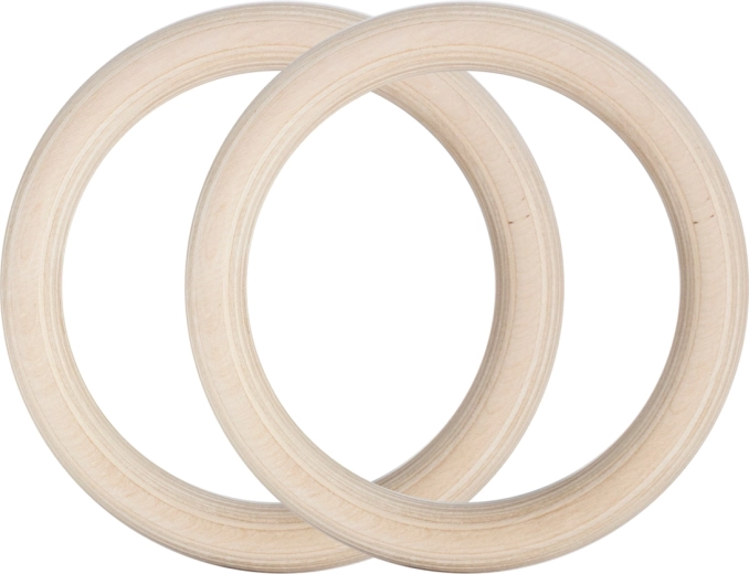 Ringene af udvalgt træ er glatte, holdbare og behagelige i hånden. Diameter på 23 cm og tykkelse på 28 mm understøtter stabilitet og teknik ved muscle-ups, dips og pull-ups.
