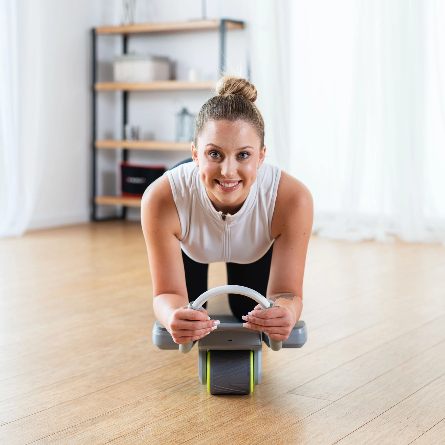 HMS KA08 løfter den klassiske ab roller til et nyt niveau. Den integrerede tilbagespringsmekanisme hjælper med at vende tilbage til udgangspositionen, reducerer belastningen på lænden og muliggør længere og mere effektive træningspas. LCD-skærmen viser tydeligt tid, kalorier, antal og frekvens af gentagelser, og den praktiske telefonholder gør det nemt at bruge træningsapps.