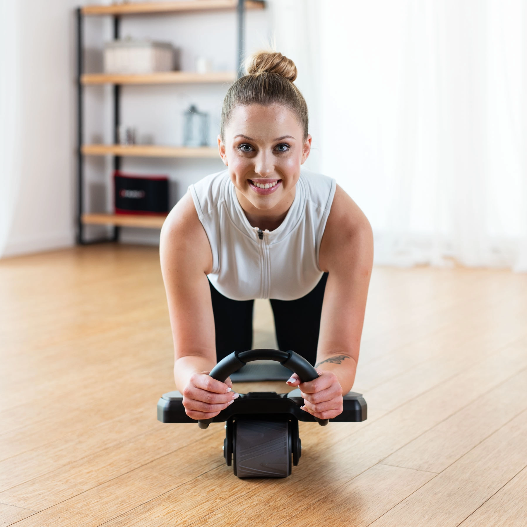 Skumhåndtag og albuepuder øger stabiliteten og komforten, så du kan fokusere fuldt ud på teknik og aktivering af core.