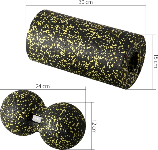 Med dette alsidige HMS-sæt kan du effektivt massere hele kroppen – fra fødder og underarme til ryg, baller og nakke. Den store rulle bruges til at løsne muskelspændinger på større områder, minirullen er perfekt til fødder og arme, dobbeltbolden (peanut) målretter dybe muskelgrupper langs rygsøjlen og skuldrene, og den separate bold rammer triggerpunkter præcist.