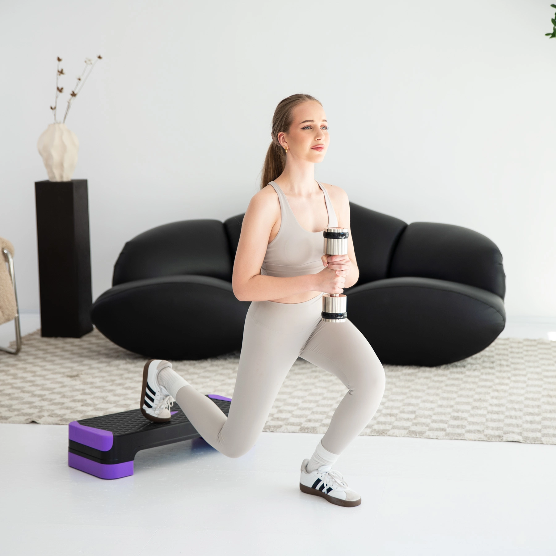 Den skridsikre overflade og robuste konstruktion giver tryghed ved step-øvelser, lunges og styrketræning med håndvægte i hjemmemiljøet.