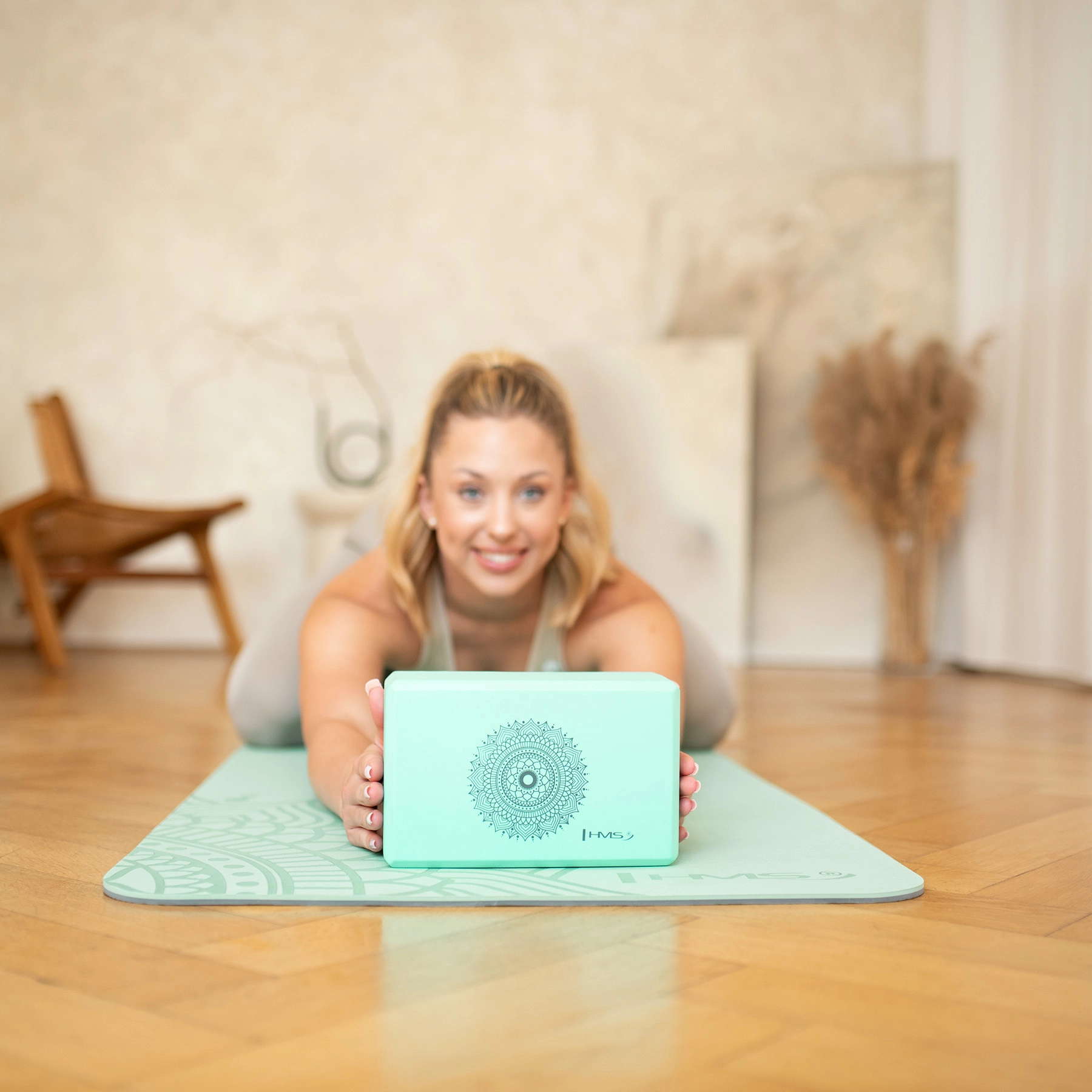 Opdag pålidelig støtte til asanas og stræk. Yogablokken HMS KJ02 i mentol er lavet af tæt, holdbar og allergivenlig EVA-skum, som giver tryghed i hver position. Takket være den skridsikre overflade og de fasede kanter ligger den godt i hånden og hjælper med at opretholde korrekt kropsjustering.