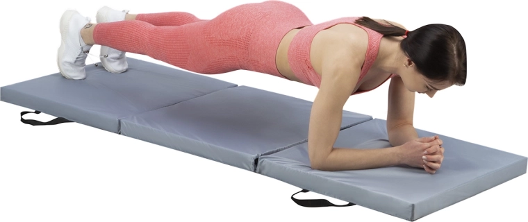 Tre fast forbundne paneler gør det muligt hurtigt at folde den til en kompakt form for nem opbevaring hjemme eller i træningssalen.