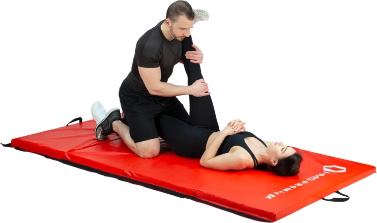 Det praktiske sammenklappelige design reducerer måttens mål til en kompakt pakke for nem opbevaring og transport. Velcro i siderne gør det muligt at forbinde flere måtter og derved skabe en stor træningsflade til gymnastik, kampsport, udstrækning, yoga eller genoptræningsøvelser.