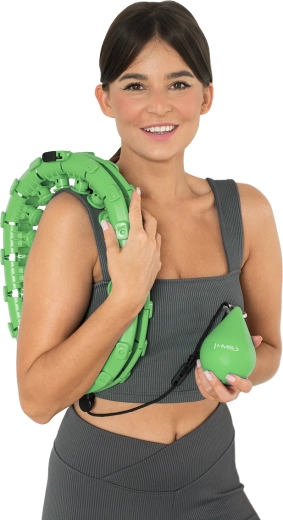 HMS HHW01 er en moderne massage-hulahopring, der kombinerer målrettet taljetræning med en behagelig massage. 24 sammenkoblelige dele gør det muligt at indstille den ideelle størrelse til en taljeomkreds på 46–105 cm. Indvendige massagekopper med fjedre dæmper vibrationer og stimulerer skånsomt mave- og hofteområdet, mens vægten på hjul med kuglelejer sikrer jævn og lydsvag bevægelse.