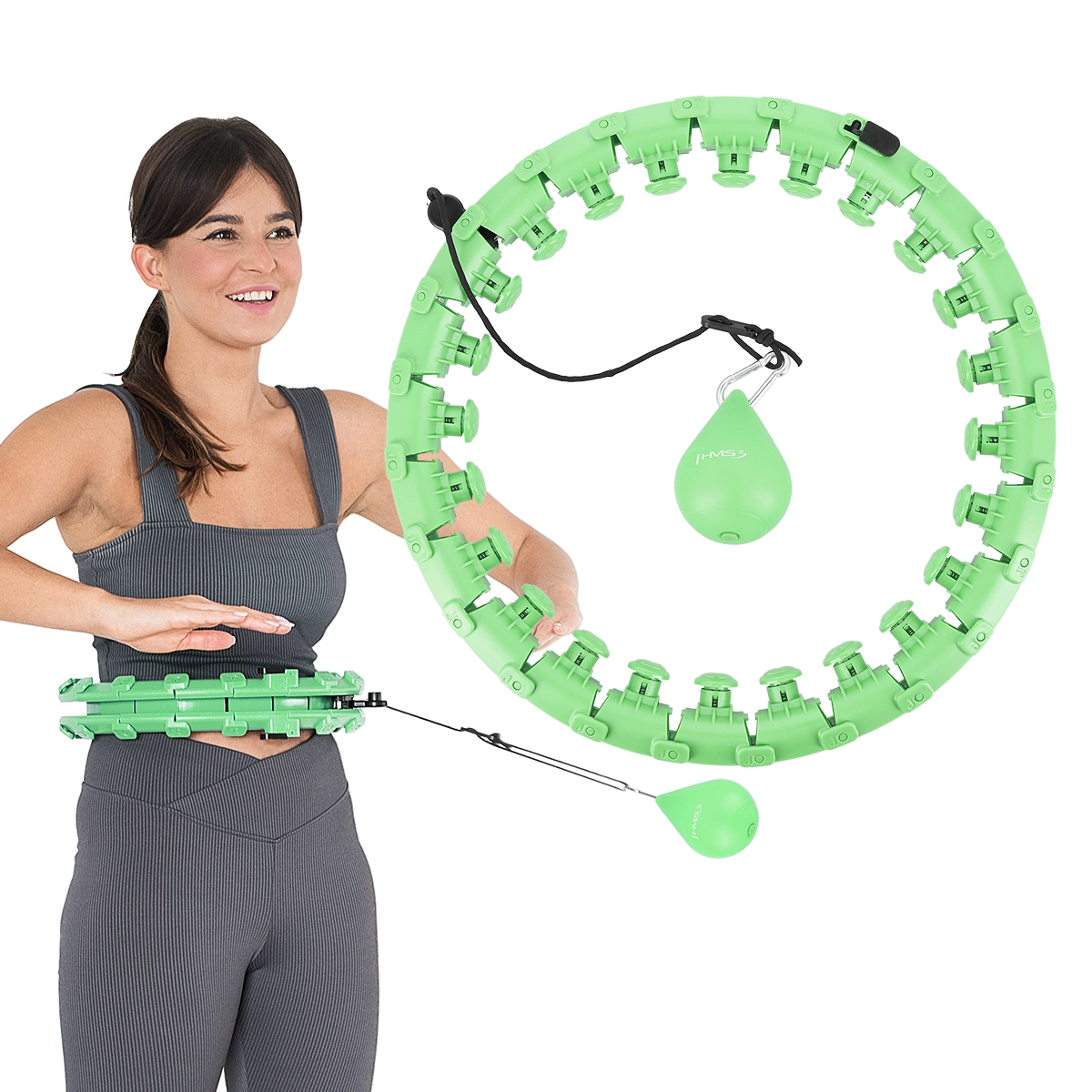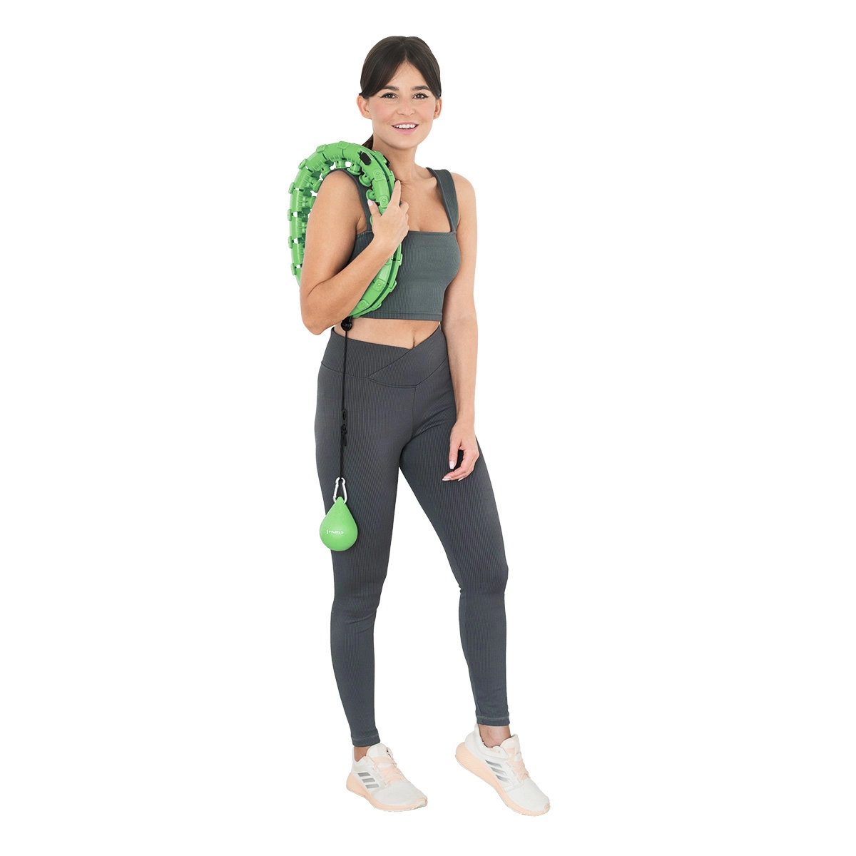 24 sammenkoblelige segmenter gør det muligt at indstille størrelsen præcist til din talje (46–105 cm). Ringen sidder stabilt og glider ikke ned over hofterne, så du kan fokusere udelukkende på bevægelsen.