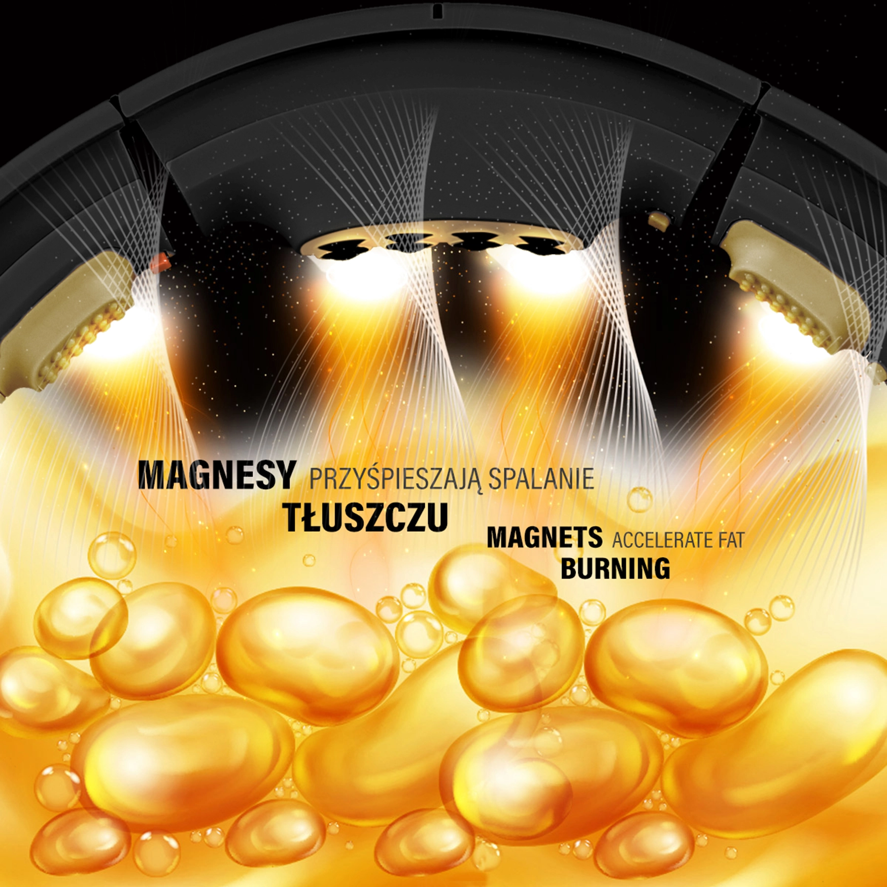 Fjederende massagekopper dæmper stød og masserer behageligt taljeområdet. Et specialsegment med 8 negativt polariserede magneter understøtter blodcirkulation og lymfesystem.