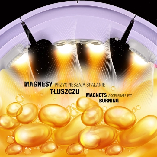 Hver del er på indersiden udstyret med fjedrende massageknopper, som absorberer vibrationer og behageligt masserer mave- og hofteområdet. Den særlige 13. del med 8 negativt polariserede magneter understøtter blodcirkulationen og lymfestrømmen og bidrager dermed til hurtigere fedtforbrænding og opstramning af problemområder.