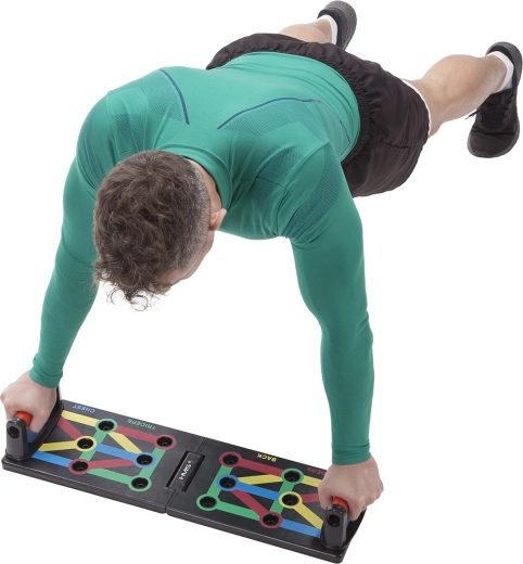 Takket være de kompakte mål og den sammenklappelige konstruktion er brættet let at transportere og opbevare. Det er ideelt til hjemmetræning, cirkeltræning og opbygning af styrke i overkroppen uden behov for komplekst udstyr. Velegnet til både begyndere og øvede.