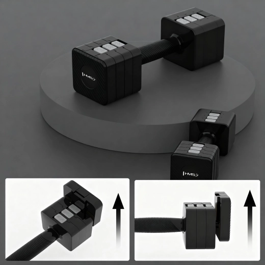 - Kompakt løsning – ét sæt erstatter fem par håndvægte, sparer plads og penge.