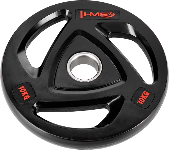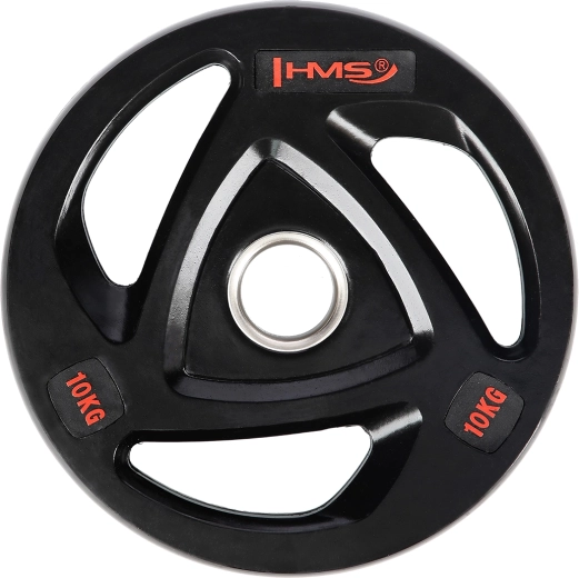 Den olympiske HMS-vægtskive 10 kg er et pålideligt valg til både hjemme- og klubtræning. Den robuste stålkerne er dækket af modstandsdygtig hård gummi, som dæmper stød og beskytter både gulvet og selve skiven. Takket være standardhullet på 50/51 mm passer den perfekt på olympiske stænger.