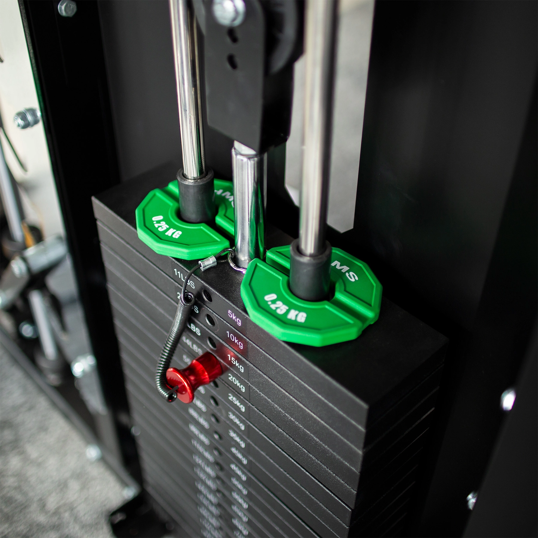 En vægt på 0,25 kg pr. skive muliggør fin, kontrolleret øgning af belastningen. Ideel til tekniktræning, PR-forsøg og tilbagevenden efter skade.