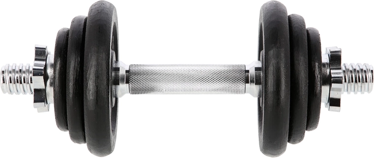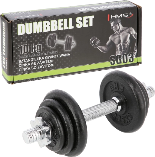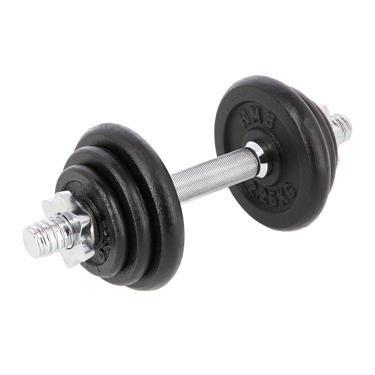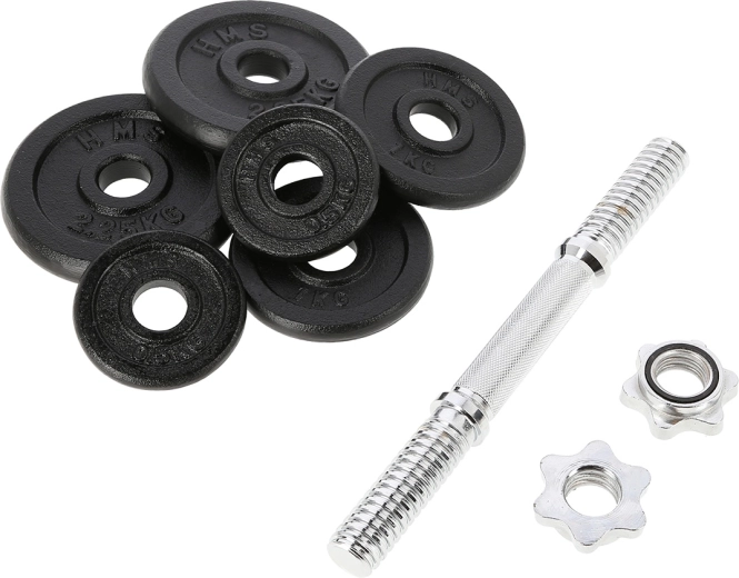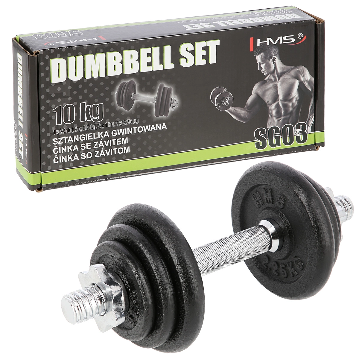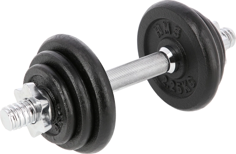 Universal håndvægt med påsættelige skiver på 10 kg fra HMS til træning derhjemme og i fitnesscenteret. Takket være gevindender og stjernemøtrikker er udskiftning af skiver hurtig og frem for alt sikkert sikret. Støbejernsskiver og et riflet, skridsikkert greb giver stabilitet, tryghed og præcis justering af belastningen til forskellige øvelser.