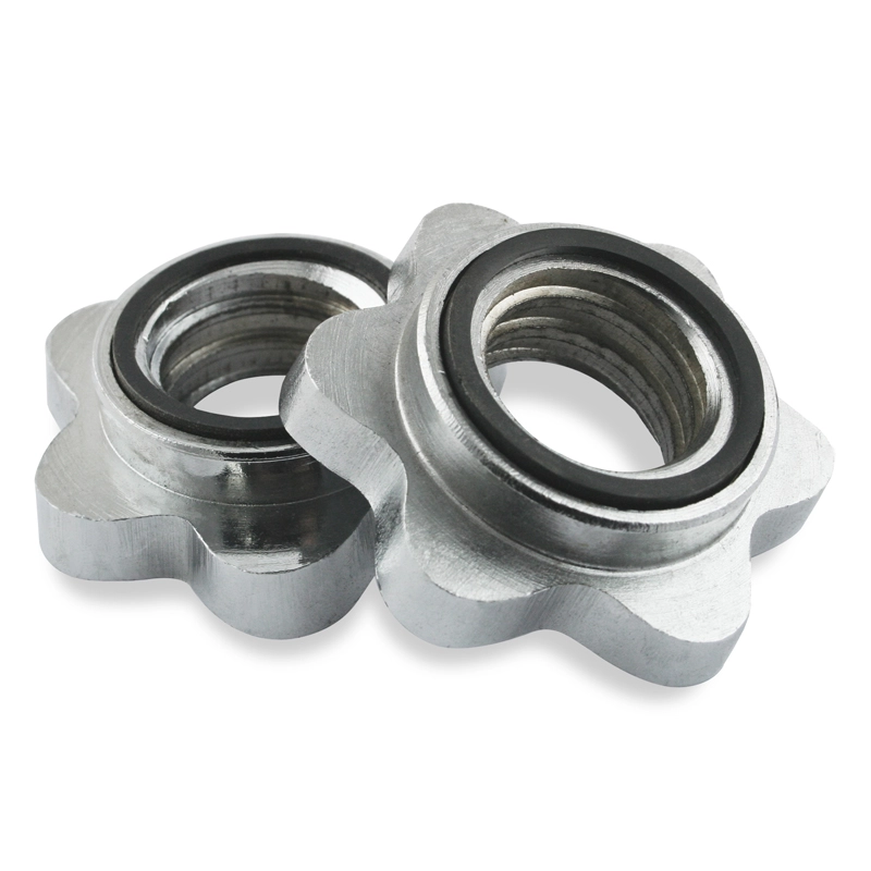 To skrue-møtrikker med indvendig gummitætning låser vægtskiverne fast og forhindrer, at de løsner sig under træning.