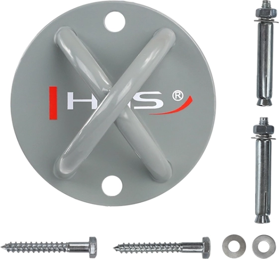 Det universelle beslag HMS UWX er et robust ankerpunkt til loft og væg, ideelt til ophængning af boksebolde, gymnastikringe eller ophængssystemer. Takket være stålkonstruktionen, de kvalitetsmæssige svejsninger og den kraftige base tilbyder det en bæreevne op til 220 kg (afhænger af underlag og fastgørelsesmetode). I pakken finder du et komplet monteringssæt til både træ og beton, så installationen er hurtig og sikker.