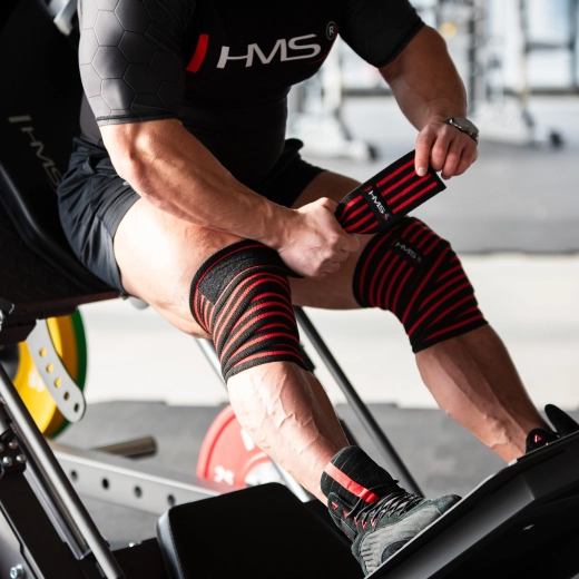 Bindene holder knæene i korrekt position, forbedrer stabiliteten og understøtter teknikken ved squat og leg press under høj belastning.