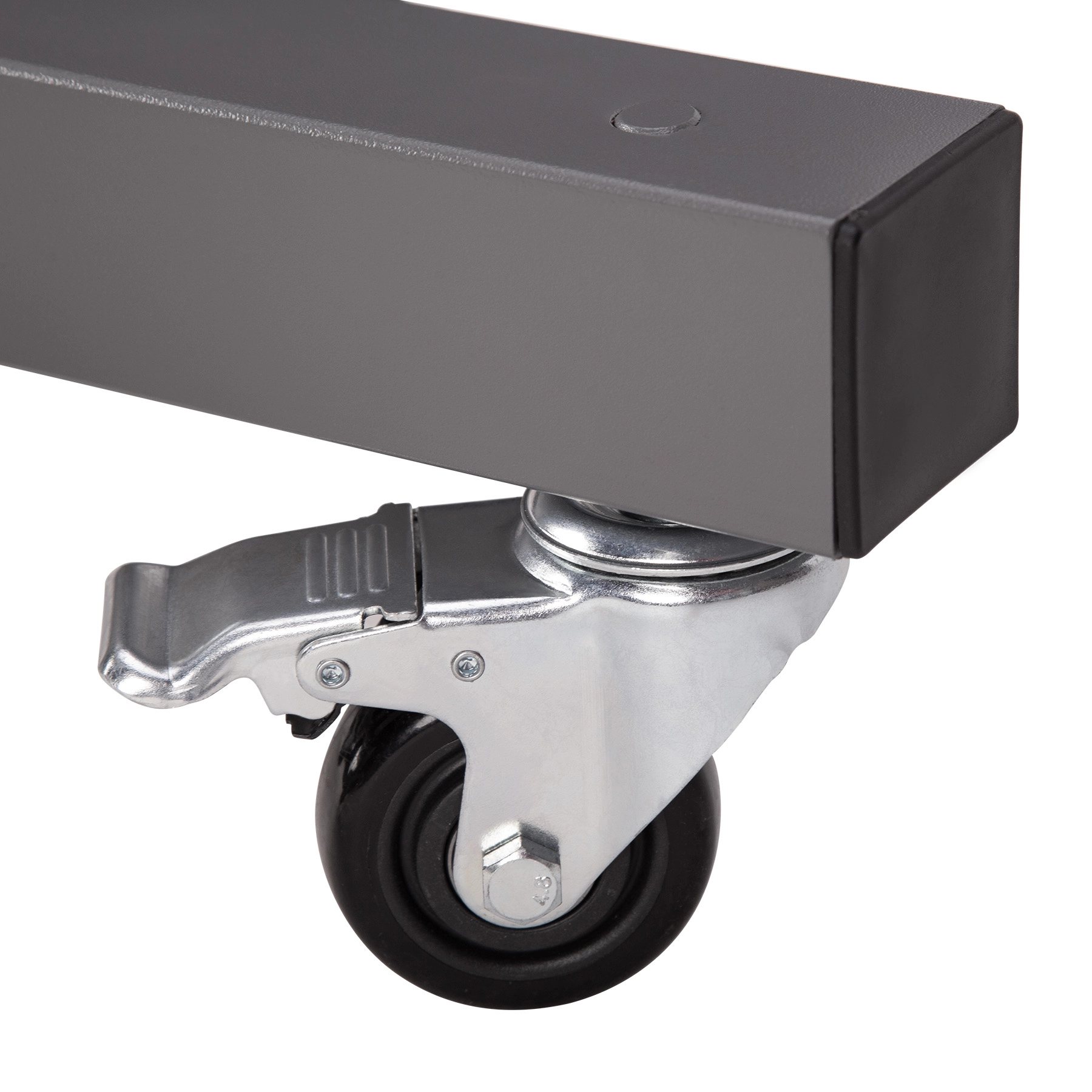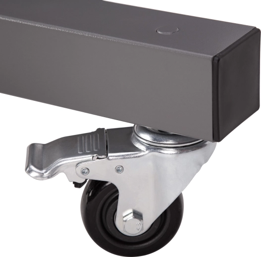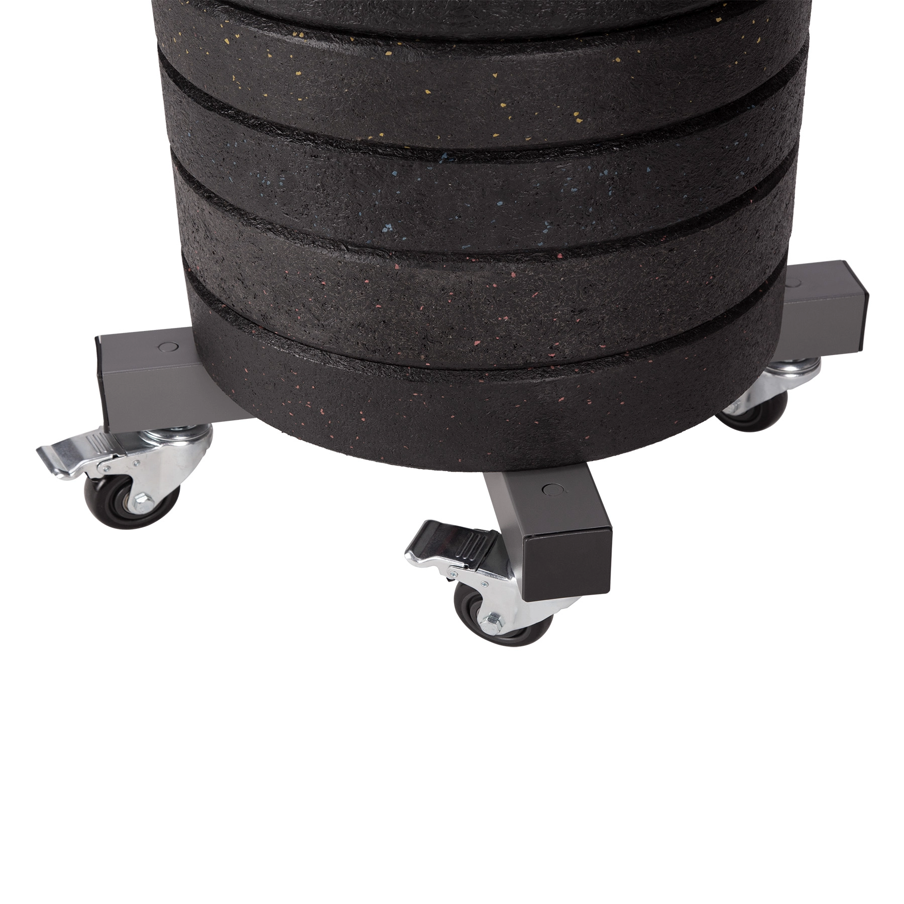 Fire drejelige hjul med fodbremser muliggør hurtig flytning af stativet og sikker fastlåsning præcis dér, hvor du har brug for at træne.