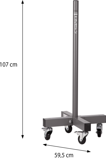 Stativet er ideelt til hjemmegyms, studier og mindre klubber – det tilbyder en kompakt grundflade, enkel montering og høj holdbarhed. Den stabile kryds-/firkantede base på 60 × 60 cm og en bæreevne på 200 kg sikrer sikker drift selv ved fuld belastning.