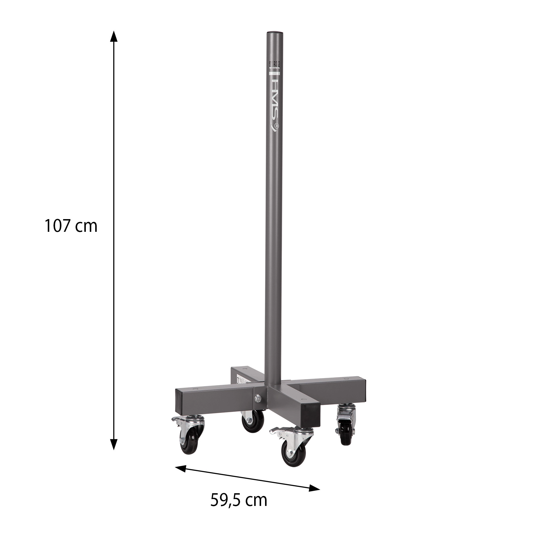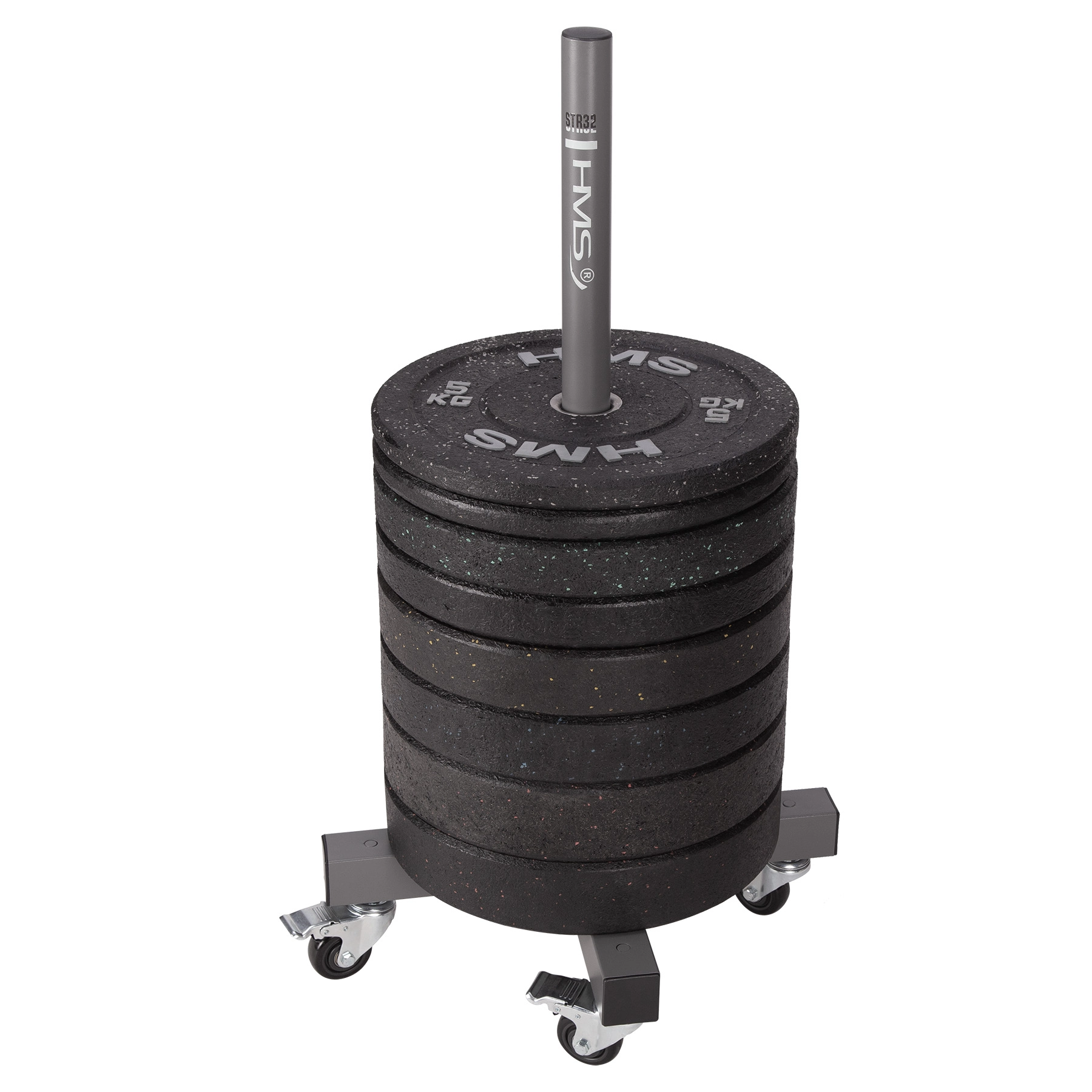 HMS STR32 er et mobilt stativ til olympiske vægtskiver, designet til hurtig organisering af vægte og et ryddeligt, sikkert træningsområde. Stålkonstruktionen med central stang (Ø 50 mm) rummer flere skiver ad gangen, og takket være de låselige hjul kan du nemt flytte det præcis derhen, hvor du har brug for det.