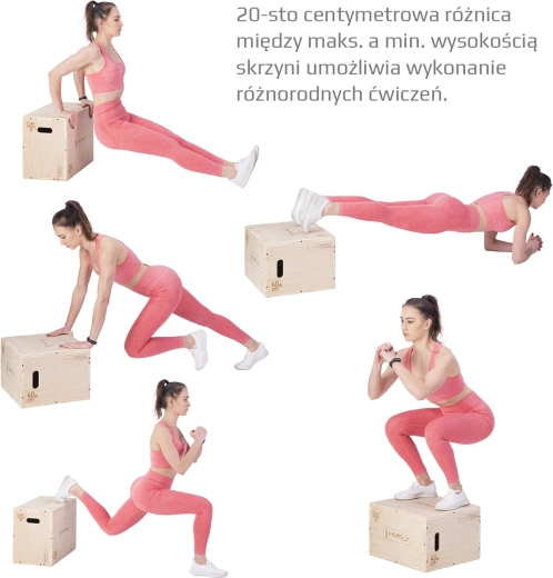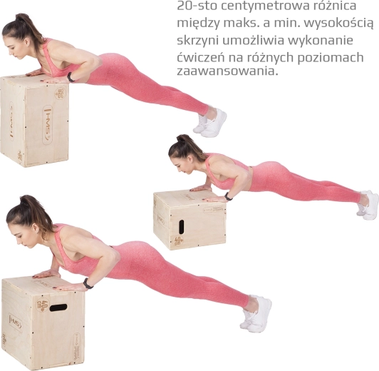 Plyometrisk boks HMS DSC04 er et alsidigt træningsredskab til at forbedre eksplosivitet, styrke og stabilitet. Takket være tre sider med forskellig højde kan du nemt ændre træningsintensiteten ved blot at dreje boksen. Den holdbare 18 mm krydsfiner og forstærkede samlinger med puslespilsudskæringer giver høj stabilitet og lang levetid, selv ved hyppig brug.