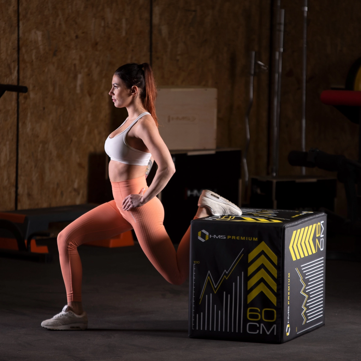 Plyo-boksen HMS Premium kombinerer en blød EPE-kerne med et slidstærkt PVC-betræk for tryghed under krævende plyometrisk træning. Skummets densitet er designet til at klare intense hop og samtidig minimere risikoen for skrammer og skader ved en uheldig landing. Én boks tilbyder tre højder – 75, 60 og 50 cm – og dækker opvarmning, styrke- og eksplosive øvelser.