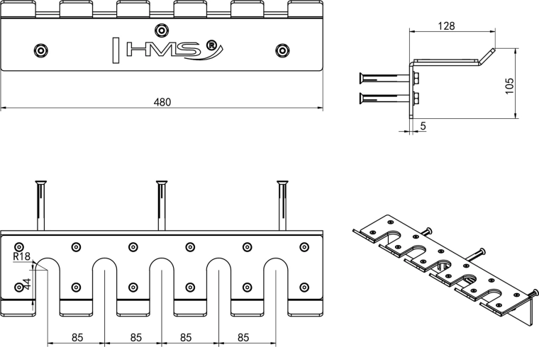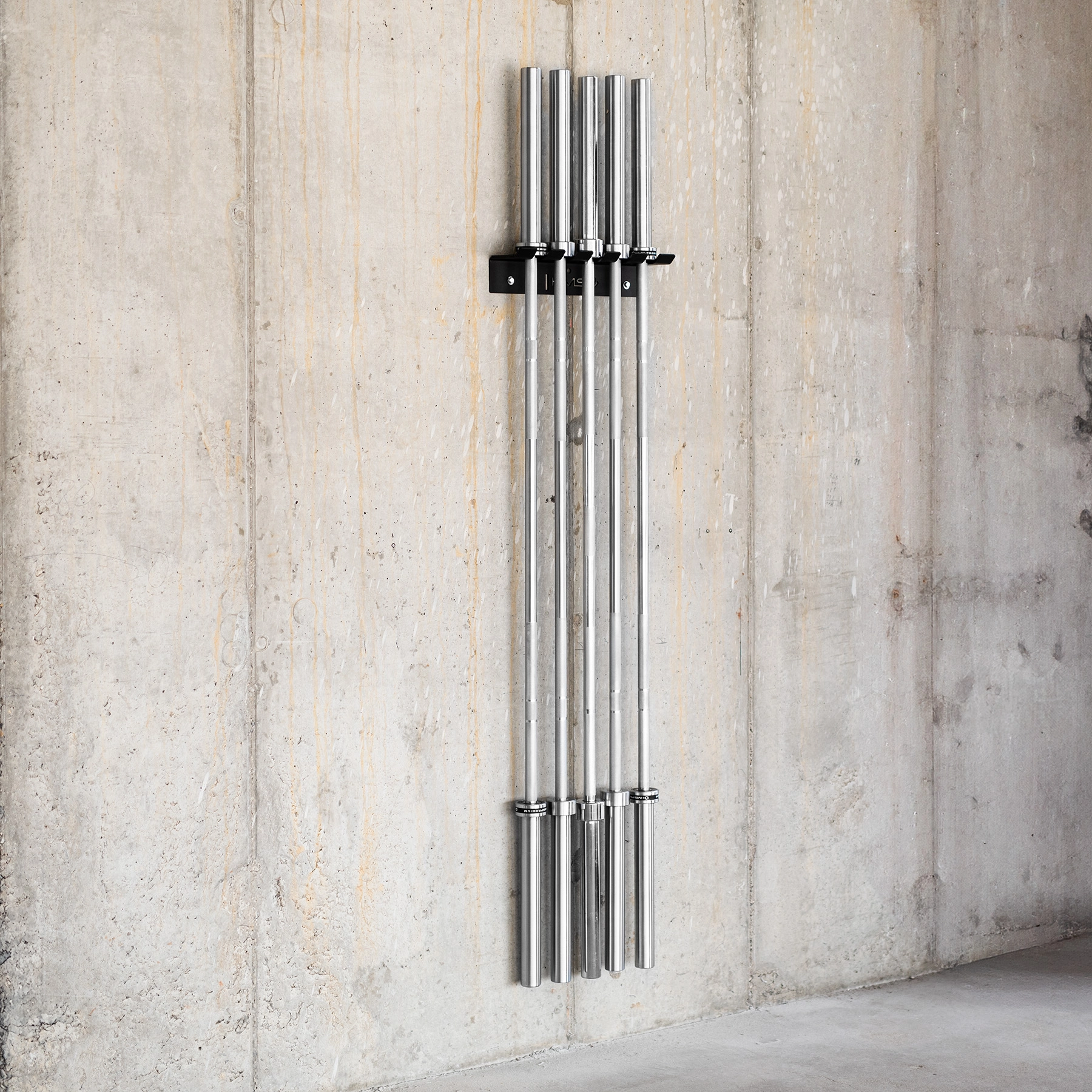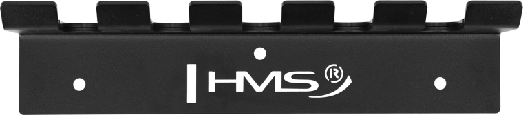 Den vægmonterede HMS-holder muliggør kompakt og sikker opbevaring af op til fem olympiske vægtstænger. Takket være vægmonteringen spares gulvplads, ordenen forbedres, og hurtig adgang til udstyret under træning lettes. Den robuste konstruktion af 5 mm stål sikrer lang levetid, selv ved hyppig brug.
