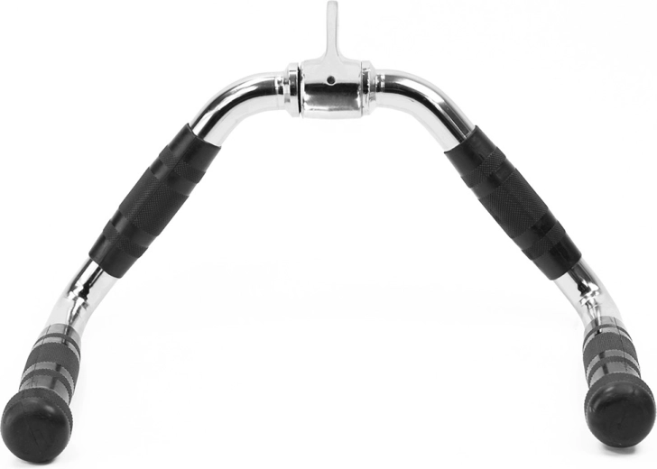 Opgradér din kabeltræning med adapteren HMS UW17B. Den robuste metalkonstruktion, drejeleddet og de ergonomisk formede greb giver naturlig bevægelsesfrihed og et fast greb ved øvelser som siddende roning, lat‑pull‑down og triceps‑pushdown. Takket være den gennemtænkte V‑geometri rammer du let både de brede og midterste rygområder.