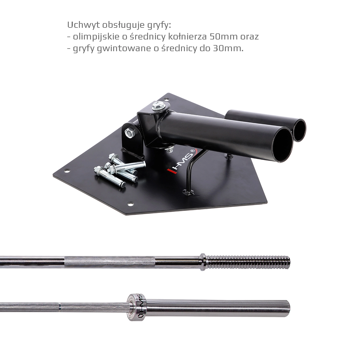HMS UCG01 er et pålideligt væg-/gulvmonteret ledbeslag til både olympiske og standard vægtstænger, som udvider dine muligheder for styrke- og konditionstræning. Det dobbelte led muliggør jævn og sikker bevægelsesføring over en halvkugleflade – ideelt til pres, rows, squats med rotation, landmine press eller anti-rotations øvelser. Den frie ende af stangen kan nemt belastes med vægtskiver efter behov.