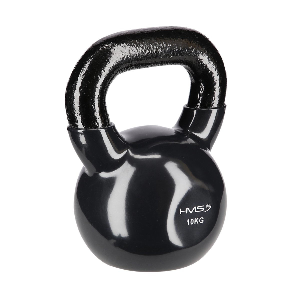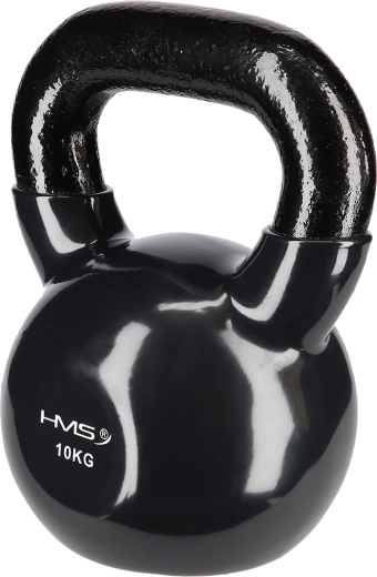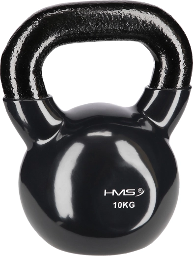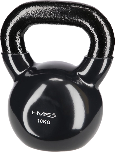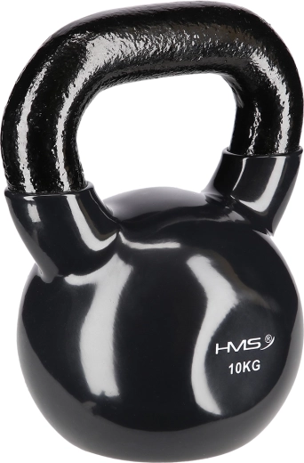 HMS kettlebell på 10 kg er fremstillet af holdbart stål med vinylbelægning, som beskytter gulvet og reducerer støj. Flad bund holder klokken stabil ved nedstilling og gør det lettere at forberede øvelser. Det teksturerede, brede håndtag giver et sikkert greb til teknisk korrekt udførelse.