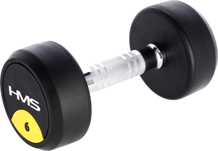 Håndvægten HMS HG Pro 6 kg er designet til krævende forhold i fitnesscentre og hjemmegym. Støbejernsvægtene er dækket af et tykt lag gummi, som minimerer stød, sænker støjniveauet og forlænger levetiden for både udstyr og gulv. Håndtaget i forkromet stål med præcis rifling og ergonomisk tøndeprofil giver et sikkert og komfortabelt greb selv under intensive sæt.
