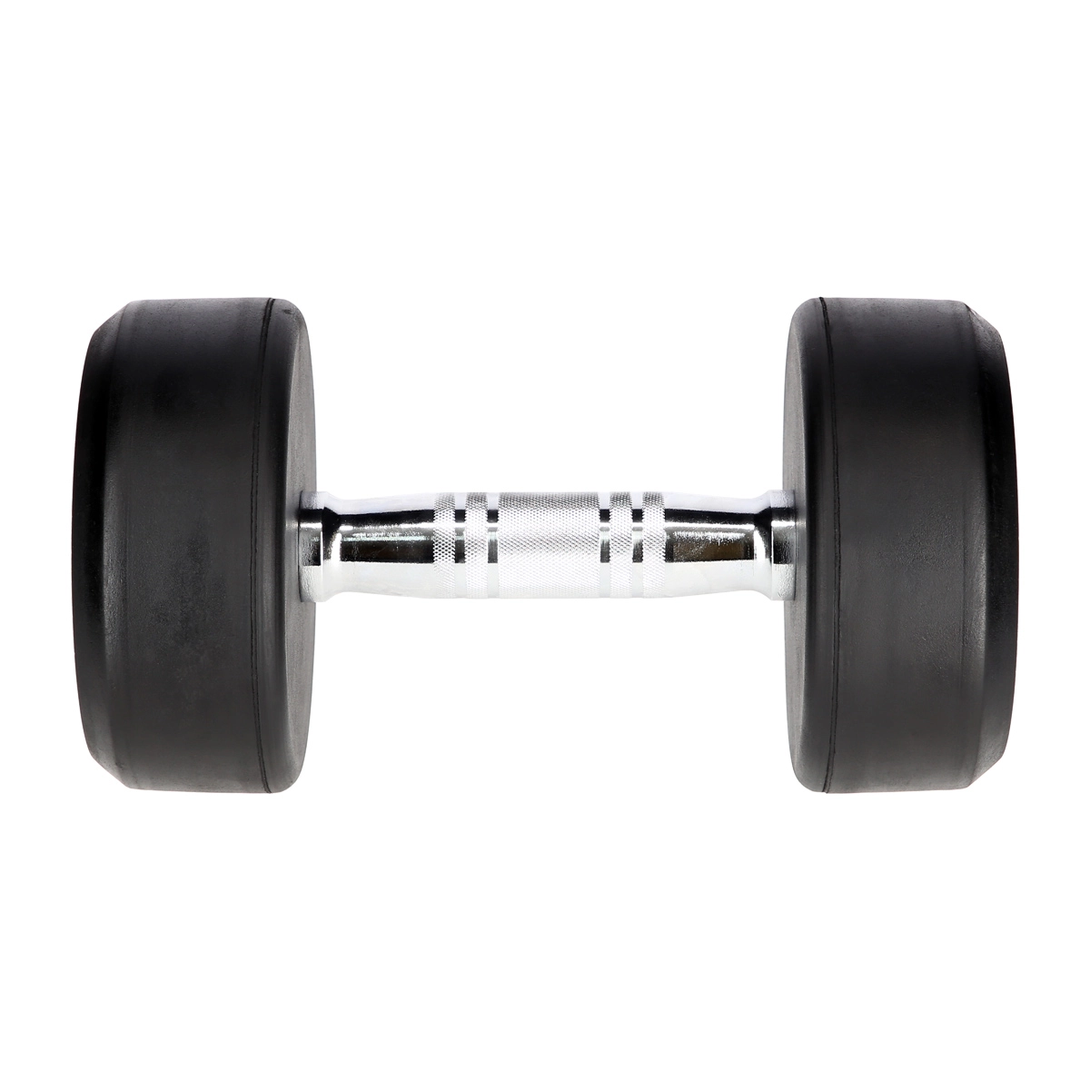 Professionel håndvægt på 9 kg med støbejernskerne og et tykt lag gummi, der beskytter både gulv og udstyr. Det ergonomiske, riflede greb i forkromet stål sikrer et stærkt greb og maksimal komfort under træning. Ideel til både hjemmegym og kommercielle fitnesscentre.