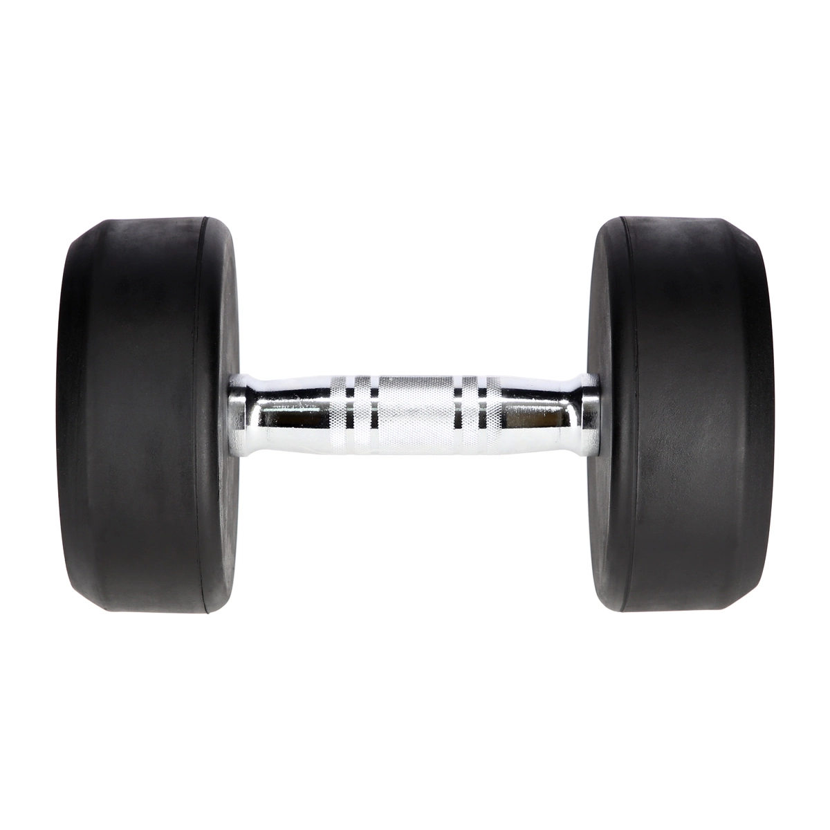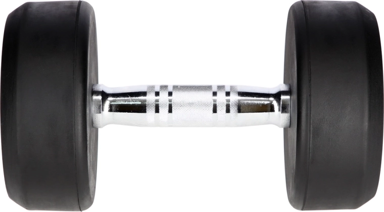 Støbejernskernen, dækket af et tykt lag gummi, beskytter både håndvægten og gulvet, reducerer støj og øger levetiden under krævende træningsforhold.