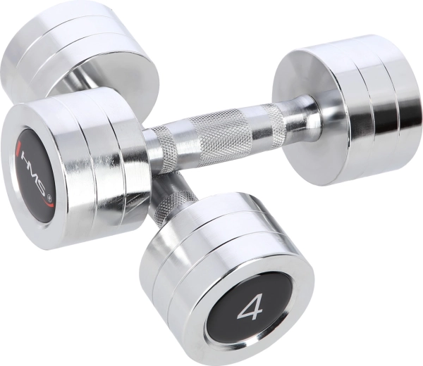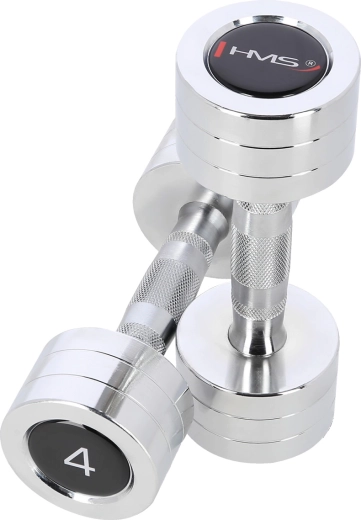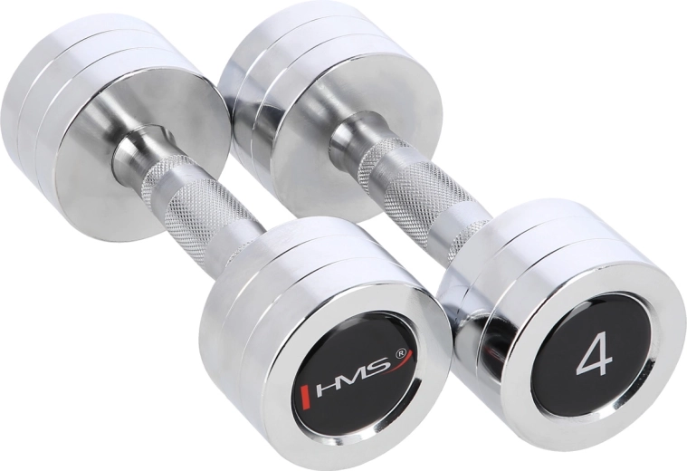 Det alsidige sæt af håndvægte HMS 2 × 4 kg er ideelt til at styrke arme, skuldre, bryst og ryg. Håndvægtskroppene er fremstillet af højkvalitets forkromet stål, som er modstandsdygtigt over for slid og oxidering. Det knurlede (riflede) håndtag sikrer et sikkert og stabilt greb selv under intens træning.