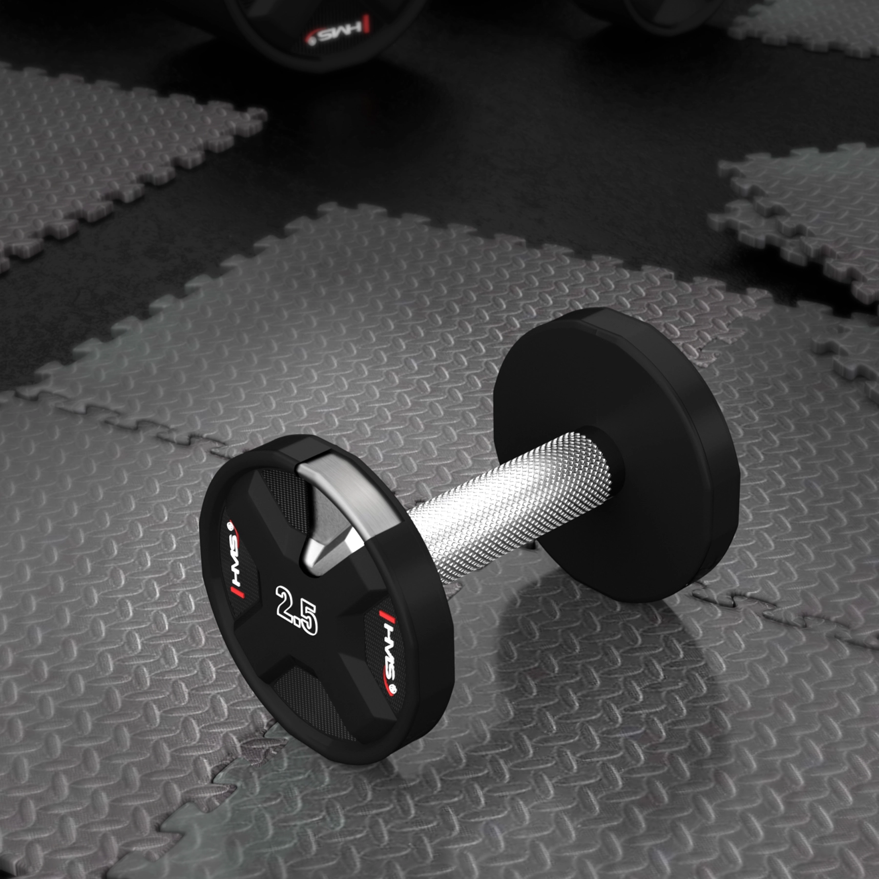 Håndvægten HMS HPC er designet til krævende brugere, der forventer pålidelighed ved høj belastning. Polyurethan (CPU)-belægningen beskytter vægtene, dæmper støj og er modstandsdygtig over for stød og slitage. Det forkromede, rillede håndtag sikrer et fast og behageligt greb selv under dynamiske sæt.