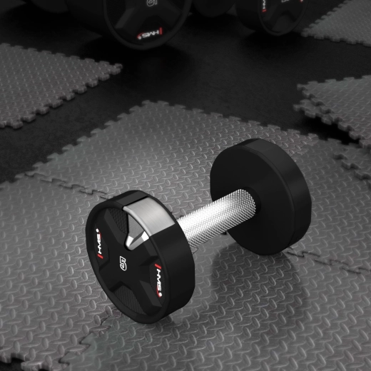 Takket være det fulde udvalg af vægte fra 2,5 til 50 kg kan du øge belastningen jævnt og effektivt opbygge styrke og muskelmasse. Det moderne design og den præcise finish gør denne håndvægt til et fremragende valg til styrke-, funktionel og dynamisk træning i ethvert miljø.