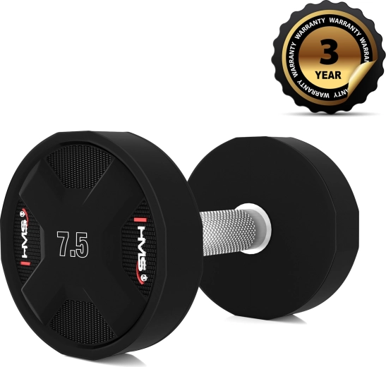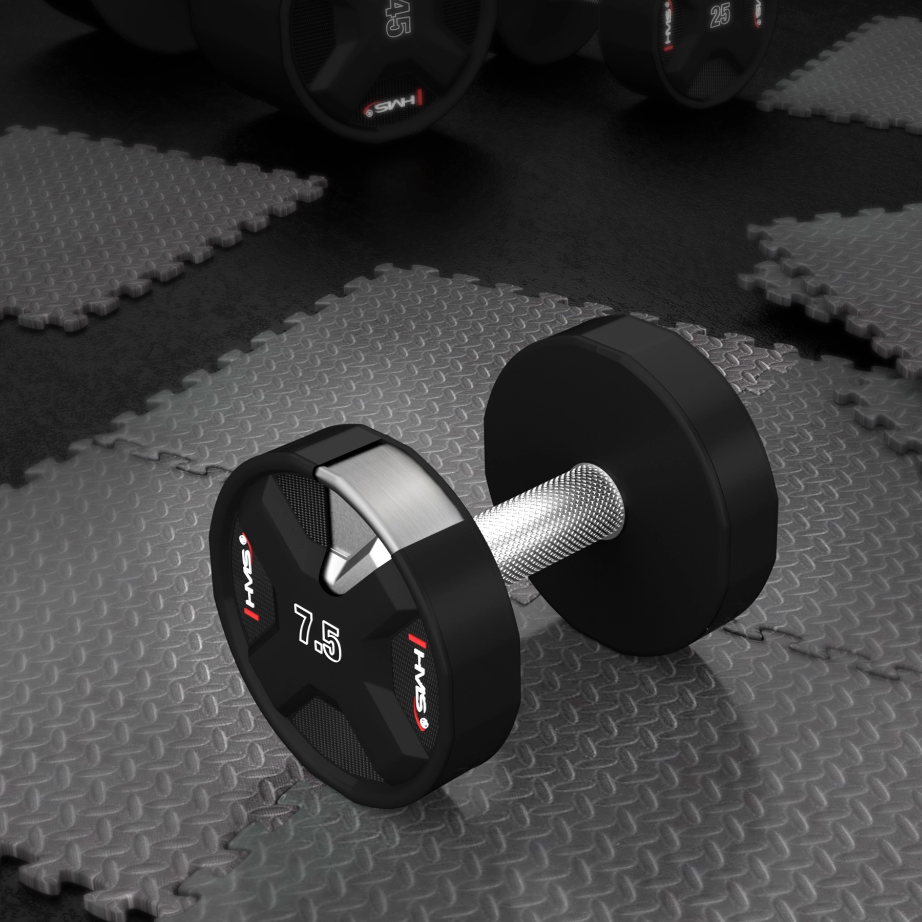 Håndvægten HMS HPC er designet til krævende træning og langvarig brug. Polyurethanenderne er meget modstandsdygtige over for slid, fald og rystelser, afgiver ingen ubehagelig lugt og er lette at vedligeholde. Det forkromede, riflede stålhåndtag giver et sikkert og komfortabelt greb selv med svedige håndflader.