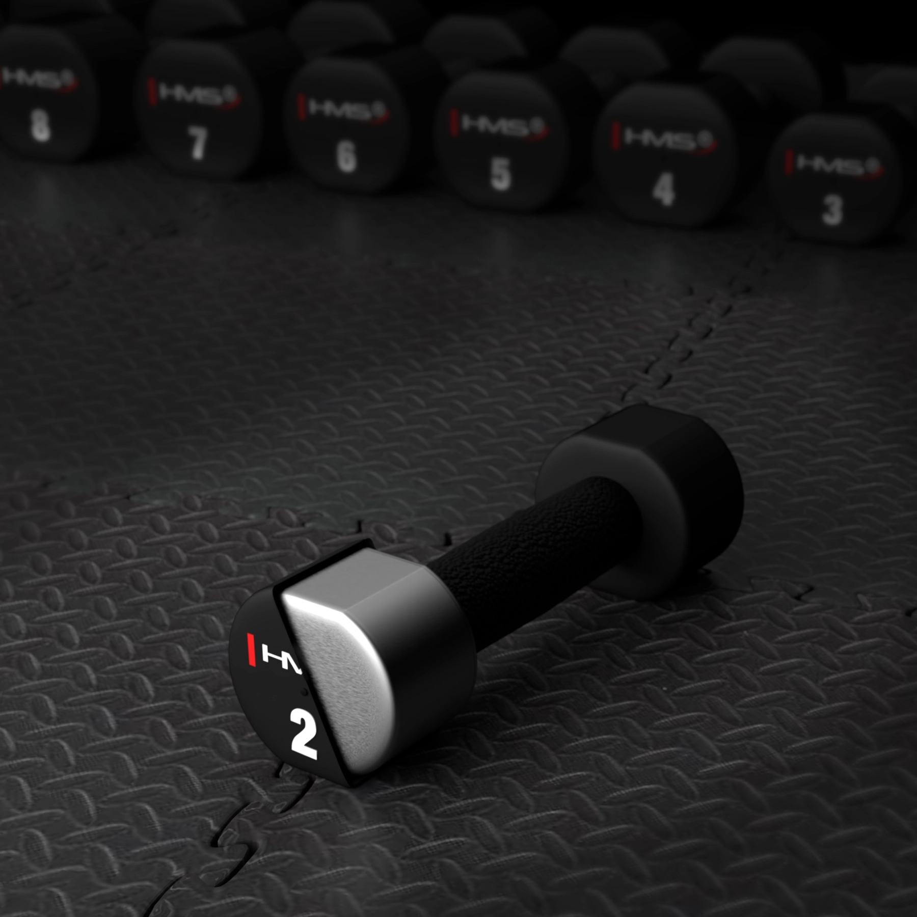 HMS HPT er kvalitets-håndvægte med stålkern e og et sort lag af termoplastisk polyurethan (TPU), som sikrer lang levetid, modstandsdygtighed over for stød og slid og samtidig er skånsom mod gulve. Det rillede, ergonomiske greb giver et fast hold selv under intens træning.