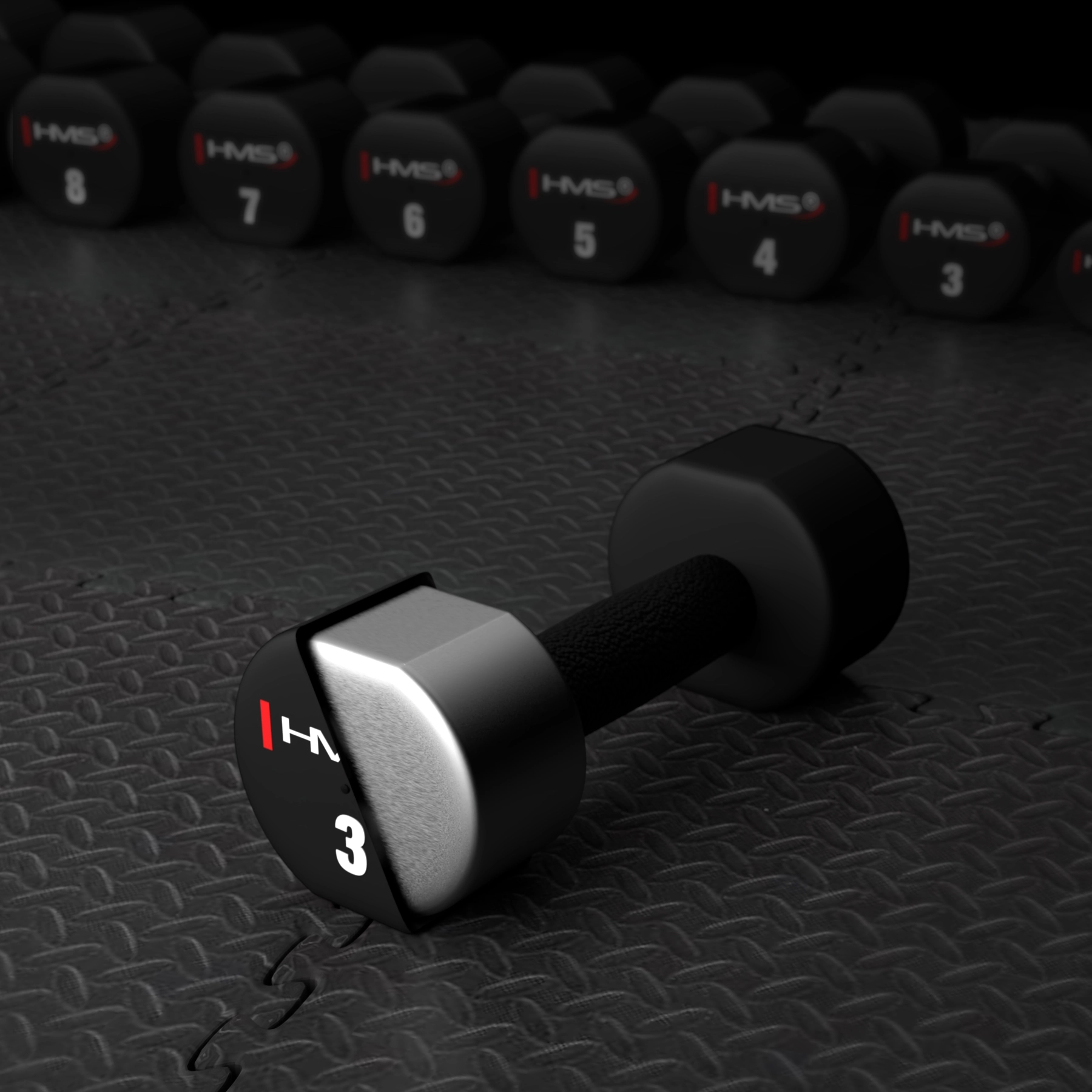 Håndvægtene HMS HPT03 kombinerer en solid stålkern e med termoplastisk polyurethan (TPU), som er elastisk, holdbar og lugtfri. Overfladen dæmper stød, beskytter gulvet og minimerer støj, så du kan fokusere på din præstation. Tydelig vægtangivelse gør det nemt at vælge hurtigt.