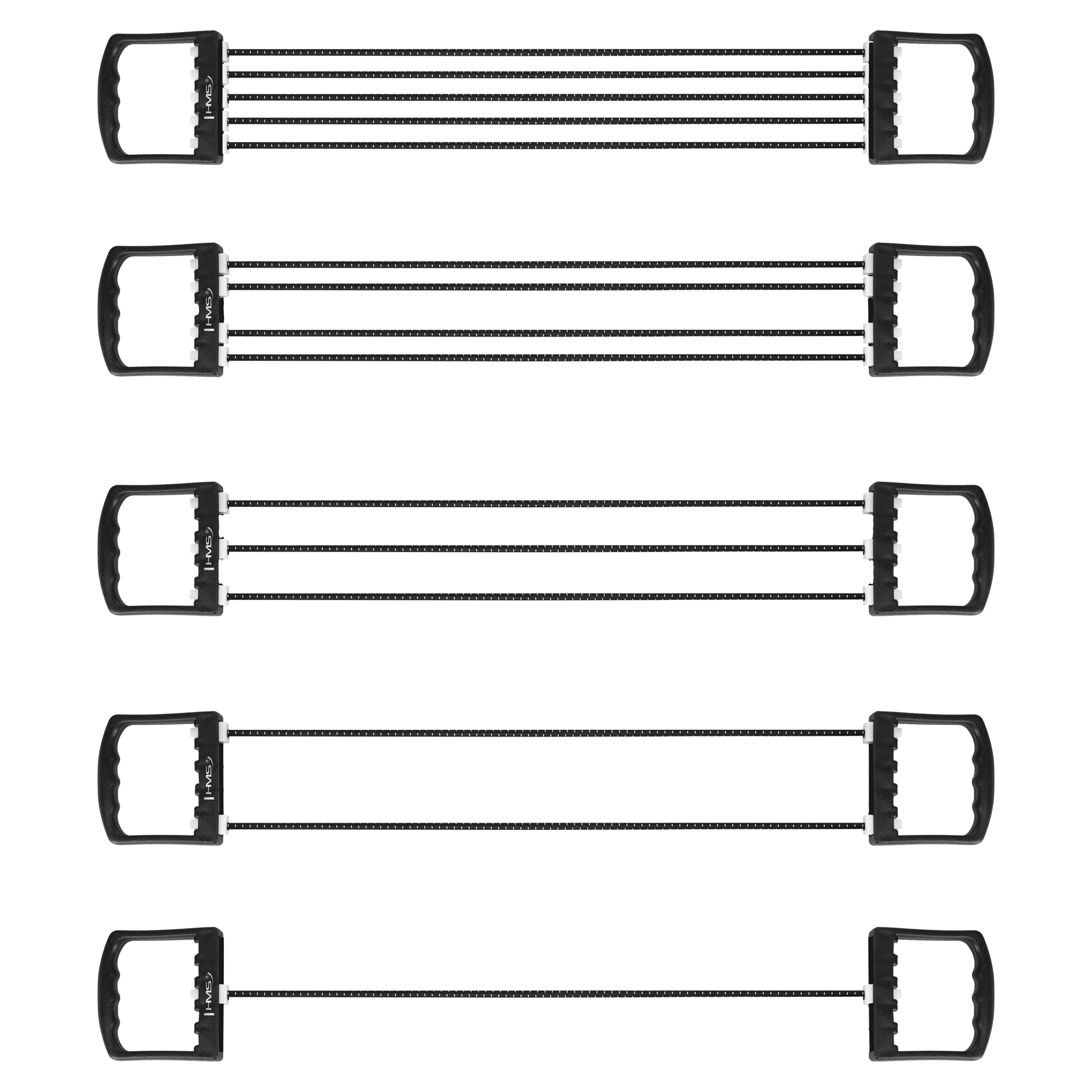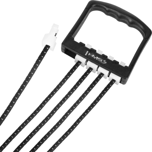 Gummi-ekspanderen fra HMS er et kompakt redskab til effektiv træning af overkroppen. Fem elastiske strenge af højstyrke gummi gør det muligt løbende at ændre belastningsniveauet og tilpasse det til både begyndere og øvede. Takket være de holdbare plastikhåndtag med ergonomisk form har du et sikkert og komfortabelt greb.
