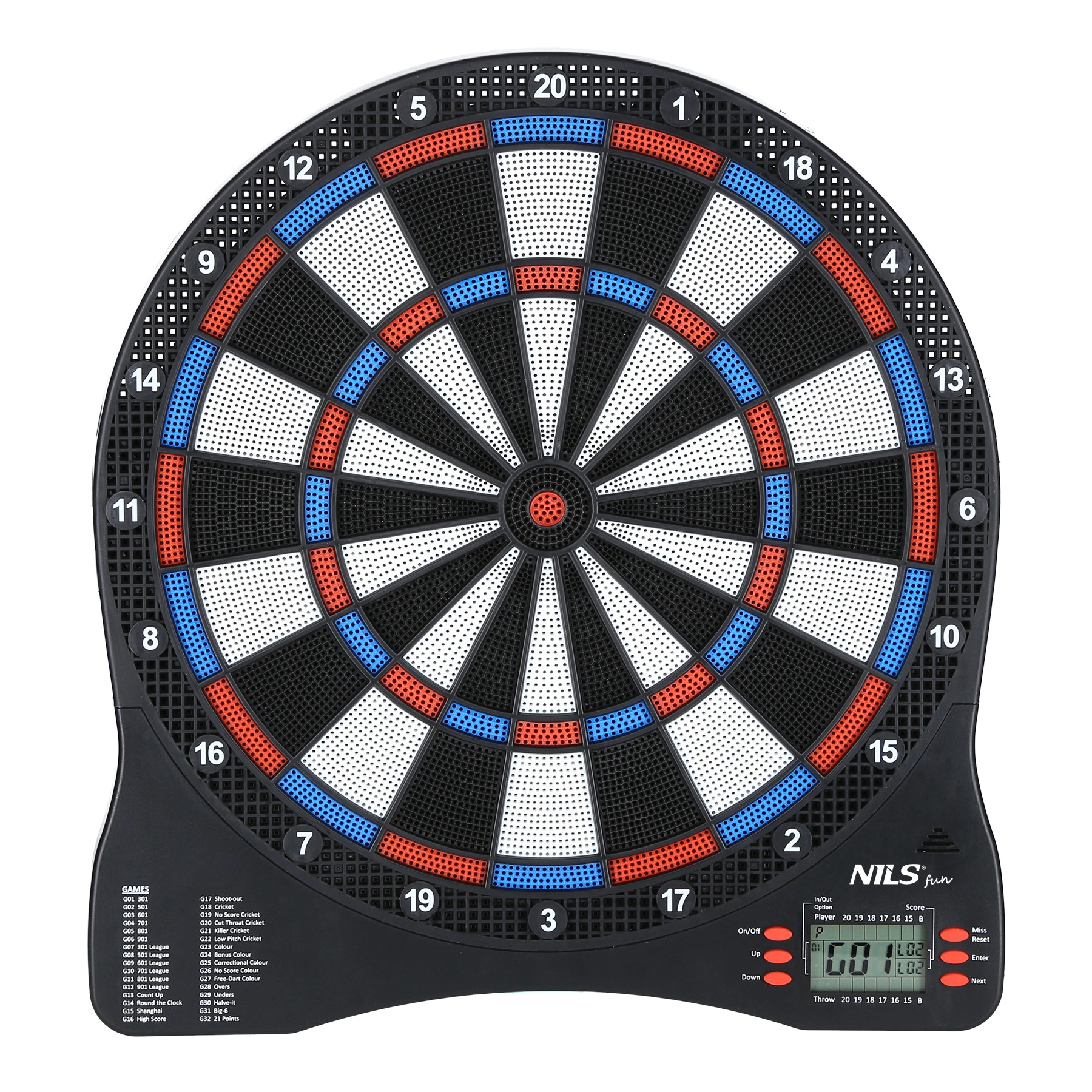 Oplev kombinationen af tradition og moderne funktioner. NILS Fun TDE01 sørger for automatisk pointsummering, overskuelig visning af resultater og nem betjening. Ideel til familie og venner takket være understøttelse af 1–8 spillere og et bredt udvalg af 32 spil, herunder 301, 501, 901, Shanghai, High-Score og Cricket.