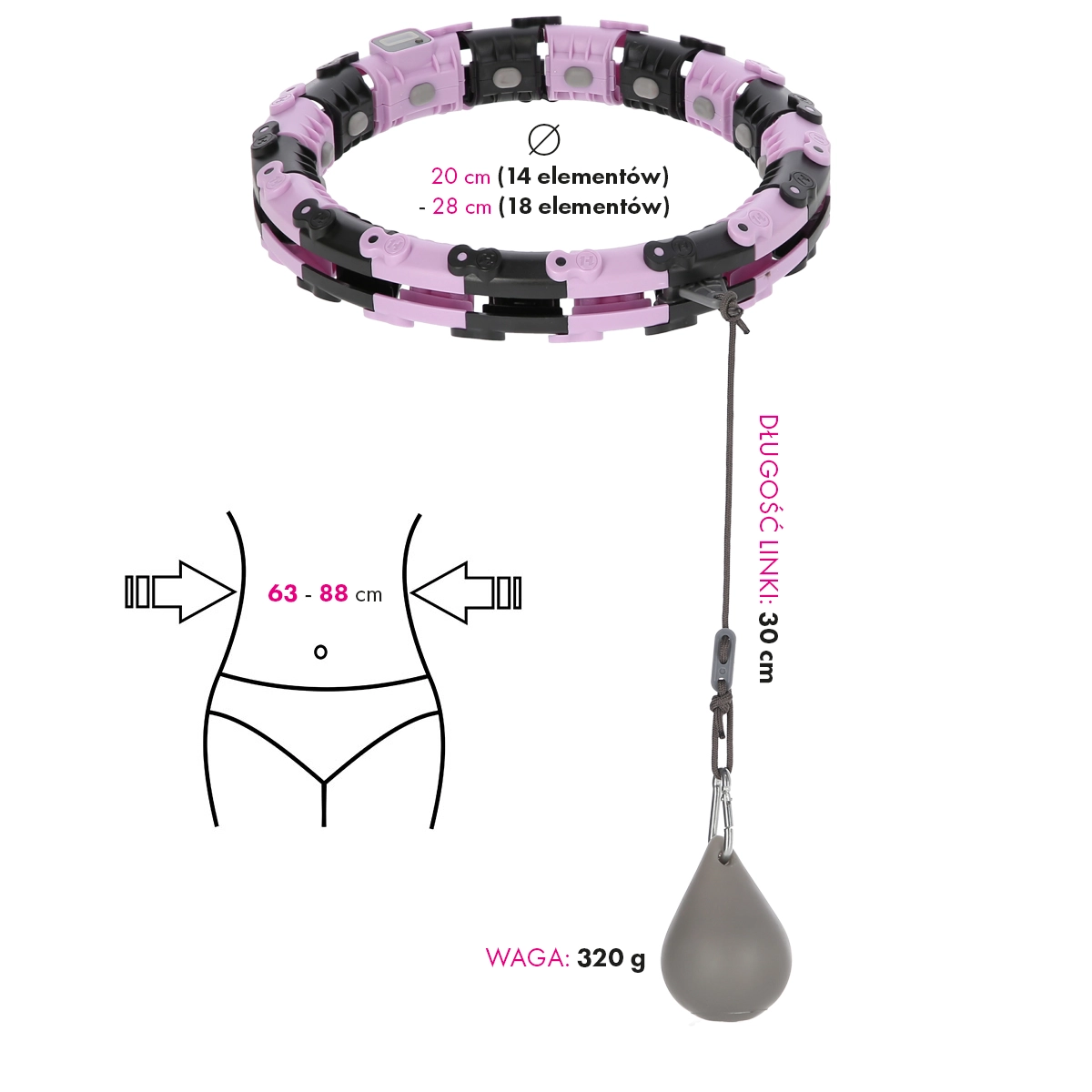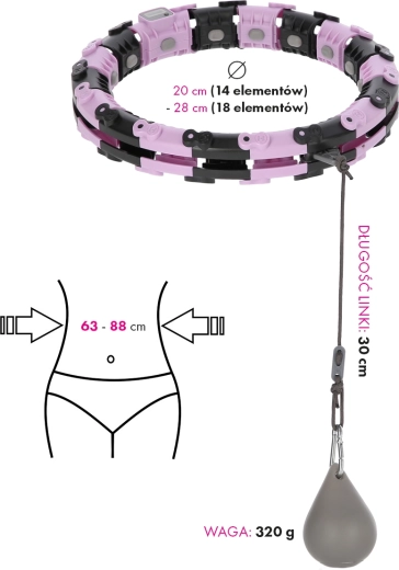 Denne moderne fitness-ring består af modulære dele, som let klikkes sammen efter din taljeomkreds. Takket være den justerbare snor med vægt (320 g) kan du nemt regulere træningsintensiteten – jo længere snor, desto større centrifugalkraft og udfordring. De indvendige massageknopper dæmper vibrationer og giver samtidig en behagelig massage.