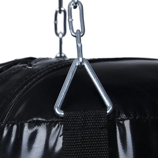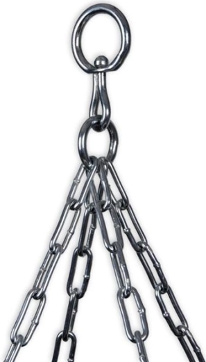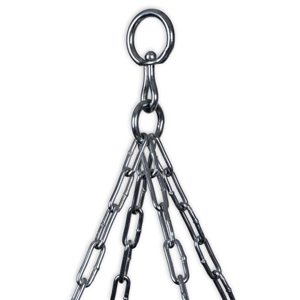 Svejsede kæder og et drejeligt ophængsøje holder posen stabil og forhindrer vridning ved kombinationer af slag og spark.