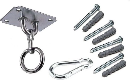I pakken finder du et monteringssæt inklusive en 6 mm karabin, så du kan udføre installationen hurtigt og uden besvær. Beslaget er beregnet til en belastning på op til 50 kg, hvilket gør det til et fremragende valg til de fleste træningsbehov i hjemmet.