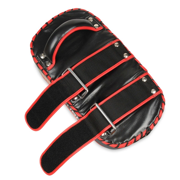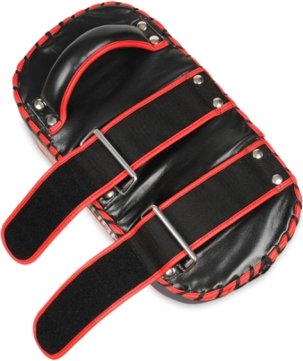 Det ergonomiske håndtag og to brede velcrostropper holder skjoldet stabilt på underarmen og muliggør præcis teknikføring. De kompakte mål 41 × 21 × 11 cm og det sort-røde design gør puden til et alsidigt valg til både klub- og hjemmetræningssale.