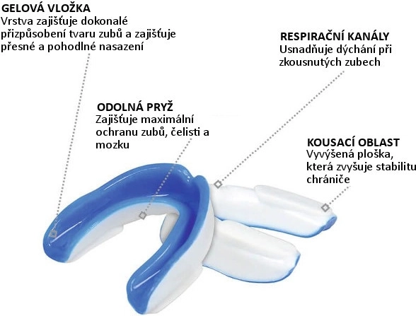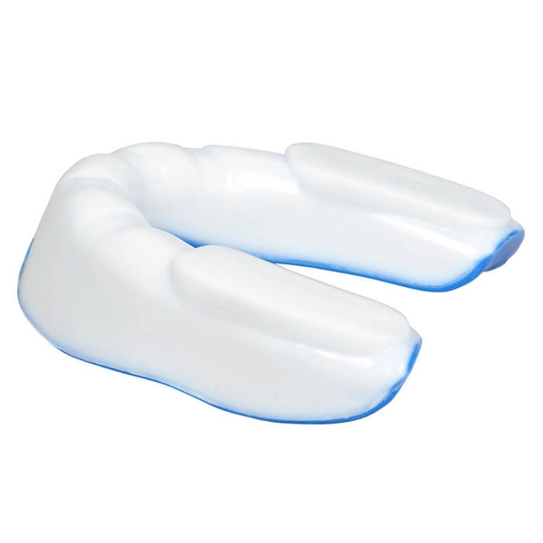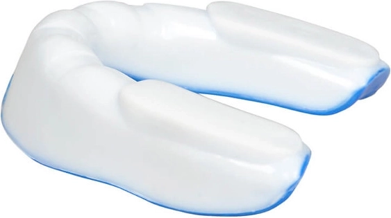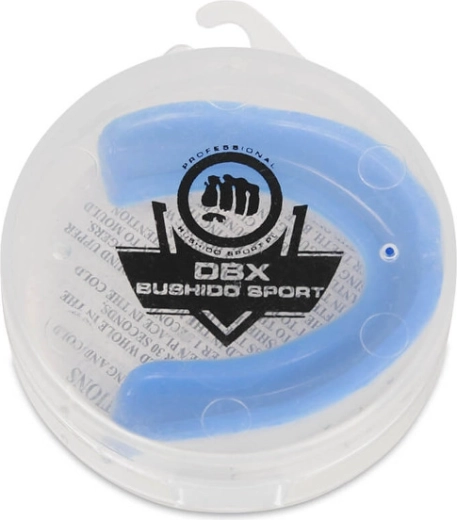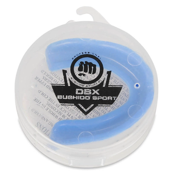 DBX Bushido tandbeskytteren i hvid‑blå er designet til de høje krav i kamp- og kontaktsport. Den to-lags konstruktion kombinerer blød gel for præcis formning til tandsættet og hærdet gummi for effektiv støddæmpning. Integrerede luftkanaler muliggør behagelig vejrtrækning selv ved sammenbid, mens to stabiliseringsflader holder beskytteren sikkert på plads.